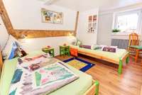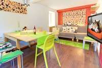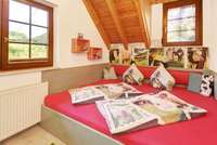 Auf der Empore ist das Elternschlafzimmer mit, wie soll es anders sein, einem Dachfenster zum Sterne gucken; -) und nur drei Stufen weiter das Kinderzimmer mit Einzelbett welches ausziehbar ist auf 160x200m. Im Wohnbereich eine moderne Küche mit Essplatz und einer gemütlichen Couch zum Ausziehen, als auch das Badezimmer mit DU/WC.Häusle bei der Linde - Exclusives "Häusle" für Zwei