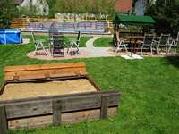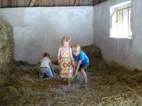 Auf Ihre Kinder wartet eine Spielscheune mit Heulager und Heubett. Zum Spielen finden Sie und Ihre Kinder ein Gartenmikado, Dosenwerfen, Federball, Stelzen für große und kleine Kinder, einen großen und einen kleinen Kicker, einen großen Billardtisch, eine Tischtennisplatte, ein großes Trampolin, XXL-Vier-Gewinnt, verschieden Kinderfahrzeuge, Sandkasten mit Sandspielzeug, eine Schaukelanlage mit Klettermöglichkeit und kleiner Rutsche und vieles mehr; Hier sind Kinder bei gutem oder schlechtem Wetter bestens aufgehoben.
