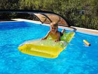 Überlauf-Pool-Komplettset mit Überdachung, Schwimmbecken 3,00 x 6,00 x 1, 50m und Pool-Gegenstromanlage zum endlosen schwimmen. (Der Strom kommt natürlich aus unserer eigenen PV-Anlage).