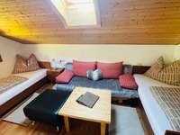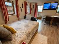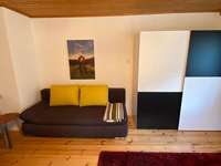 Es ist 1 geräumiges Schlafzimmer mit 1x Doppelbett & 1x Schlafsofa (bis zu 4 Personen) und - 1 Wohn- Schlafzimmer mit 1x Doppelbett (2 Personen ) vorhanden.Ferienwohnung "Bergblick"