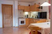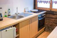Das Appartement bietet eine komplette Küchenzeile mit Backrohr, Wasserkocher, Ess- und Kochgeschirr, Geschirrtücher, Spülmaschine mit Taps, Stabmixer, Rührgerät, Toaster, Kühlschrank mit Gefrierfach, Filterkaffeemaschine.