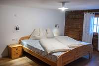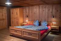 Unsere Suite Ruetert befindet sich im zweiten Stock im über 400 Jahre alten, historischen Bauernhaus. Doppelbett und abgetrennt noch ein französisches Bett (die beiden Betten können durch Sichtschutzvorhänge abgetrennt werden. Naturholzboden aus Eiche. Besonderheit: die beiden Betten sind in Fichte gehalten und das Holz der Betten stammt noch aus den uralten historischen Fußbodenbrettern des „Unterdaches“. Kleiderschrank in qualitätsvoller Zirbe. Chill-Lese-Ecke mit Kaminofen. Neues Badezimmer in hochwertigen, heimischen Materialien: Dusche, WC, Föhn, kuschelige Hand- & Badetücher. Fußbodenheizung nur im Winter, TV mit 40 Sendern aber kein Sat-TV. Weil das Haus unter Denkmalschutz steht hat die Suite keinen Balkon dafür aber eine große Panoramascheibe die die Suite mit Licht überfluten lässt. Alles neu und hochwertig renoviert.