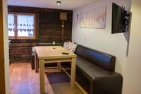 Unser Appartement Bauernsuite befindet sich im ersten Stock des über 400 Jahre alten, historischen Bauernhauses. Sie bietet drei getrennte Schlafzimmer mit jeweils einem Doppelbett. In zwei der Schlafzimmer befindet sich noch jeweils ein ausziehbares Schlafsofa für jeweils eine Person. Dieselben beiden Zimmer sind noch komplett mit dem historischen über 400 Jahre alten und hochwertigen Zirbengetäfel ausgestattet. Naturholzboden aus Eiche in der gesamten Wohnung. Die Ferienwohnung bietet einen schmalen Balkon Richtung Dorfeingang und auf der anderen Seite einen Gemeinschaftsbalkon wo sich auch die Gäste der im 2. Stock liegenden Suiten aufhalten dürfen.