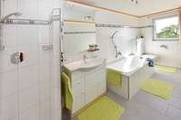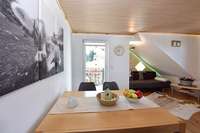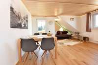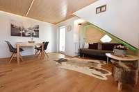 Neue, helle und geräumige Ferienwohnung mit traumhaftem Blick in die Natur. Gemütlich, stil- und liebevoll eingerichtet mit überdachtem Balkon und voll ausgestatteter Küche. Ein Schlafzimmer, Wohnraum mit ausziehbarer Schlafcouch, SAT-TV/Radio, Badezimmer mit Fußbodenheizung, offener Dusche, Badewanne und Toilette.