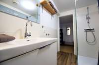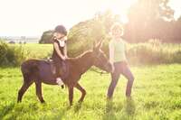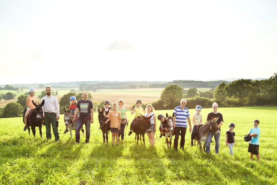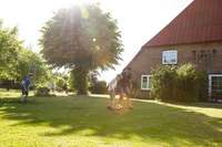 Die Ferienwohnung "Eselstall" ist 50 qm groß und befindet sich im Erdgeschoss. Sie ist mit einer geräumigen Wohnküche inkl. Geschirrspüler, einem Elternschlafzimmer, einem Kinderzimmer (ein Etagenbett u. ein Einzelbett) und Dusche mit WC ausgestattet. Die Terrasse ist direkt vor der Wohnung.Ferienwohnung "Schafstall"
