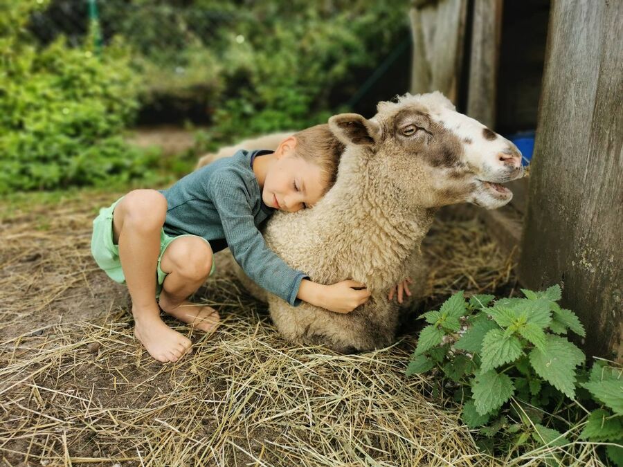Die Ferienwohnung "Schafstall" ist 50 qm groß und befindet sich im Erdgeschoss. Sie ist mit einer geräumigen Wohnküche inkl. Geschirrspüler, einem Elternschlafzimmer, einem Kinderzimmer (ein Etagenbett u. ein Einzelbett) und Dusche mit WC ausgestattet. Die Terrasse ist direkt vor der Wohnung.Ferienwohnung "Hühnerstall"