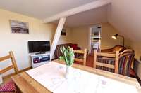 Der Gemeinschaftsraum "Peerstall" lädt Sie zum Verweilen ein. Dort befindet sich eine Spielecke, Sie finden Bücher zum Stöbern & Lesen sowie eine Auswahl an Gesellschaftsspielen, die z. B. bei schlechtem Wetter für Abwechslung sorgen.