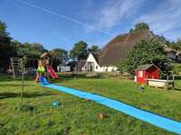 Für Kinder gibt es auf dem Hofgelände ein großes Trampolin, ein Klettergerüst, einen Sandkasten und ein Spielhäuschen, sowie einen eingezäunten Rasenplatz, der zum Ball- und Frisbeespielen, oder einfach zum Toben einlädt.