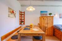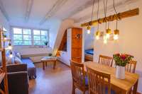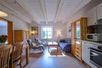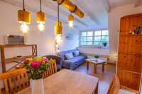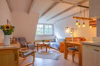 Sieben individuelle und gemütlich eingerichtete Ferienwohnungen im Haubarg bieten Platz um allein, zu zweit oder als Familie Urlaub zu machen – Wohlfühlatmosphäre unter dem Reetdach garantiert.