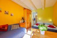 Die Wohnung „Eichhörnchen“ ist barrierefrei nutzbar.Die 1-Zimmer-Eckwohnung mit Gartenblick befindet sich im Erdgeschoss und bietet mit einer Fläche von 13 m² Platz für bis zu 2 Personen.Die 1-Zimmer-Wohnung Rosengarten mit Gartenblick befindet sich im Erdgeschoss und bietet mit einer Fläche von 23 m² Platz für bis zu 2 Personen.Die 1-Zimmer-Wohnung Kokopelli mit Gartenblick befindet sich im Erdgeschoss und bietet mit einer Fläche von 20 m² Platz für bis zu 2 Personen.Die 2-Zimmer-Wohnung Eichhörnchen mit Gartenblick befindet sich im Erdgeschoss und bietet mit einer Fläche von 51 m² Platz für bis zu 5 Personen.Die 2-Zimmer-Wohnung Starenkasten mit Gartenblick befindet sich im 1. Obergeschoss und bietet mit einer Fläche von 47 m² Platz für bis zu 5 Personen.Die 2-Zimmer-Wohnung Storchennest mit Gartenblick befindet sich im 1. Obergeschoss und bietet mit einer Fläche von 41 m² Platz für bis zu 4 Personen.Die 2-Zimmer-Wohnung Eulennest mit Gartenblick befindet sich im 1. Obergeschoss und bietet mit einer Fläche von 42 m² Platz für bis zu 4 Personen.