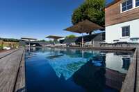 Unser beheizbarer Natur-Pool hat eine Wassertiefe von 1,35 m. Der Pool ist 18,5 m lang und 4 m breit. Ideal um ein paar Bahnen zu Schwimmen und ganz nebenbei die traumhafte Aussicht zu genießen.