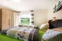 Das Ferienhaus eignet sich für bis zu vier Personen. Es verfügt über zwei getrennte Schlafzimmer, eines davon mit Doppelbett, das andere mit zwei Einzelbetten und einem Badezimmer mit ebenerdiger Dusche. Eine vollausgestattete Küche mit Geschirrspüler, Essbereich und gemütlichem Wohnraum.Ferienhaus Habicht