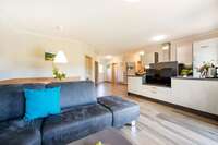 Das Ferienhaus eignet sich für bis zu sechs Personen. Es verfügt über drei getrennte Schlafzimmer, zwei davon mit Doppelbett, das andere mit zwei Einzelbetten und zwei Badezimmer mit ebenerdiger Dusche. Eine vollausgestattete Küche mit Geschirrspüler, Essbereich und großem Wohnraum.Ferienhaus Bussard