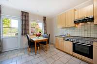 Das Ferienhaus eignet sich für bis zu vier Personen. Es verfügt über zwei getrennte Schlafzimmer, eines davon mit Doppelbett, das andere mit zwei Einzelbetten und einem Badezimmer mit ebenerdiger Dusche. Eine vollausgestattete Küche mit Geschirrspüler, Essbereich und gemütlichem Wohnraum.Ferienhaus Sperling