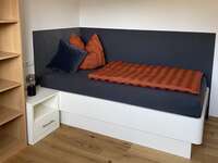 - Elternschlafzimmer mit komfortablem Doppelbett (Fußende offen)