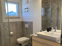 Bad mit WC, begehbarer Dusche Raindancer, Föhn und Kosmetikspiegel