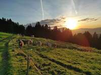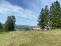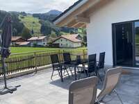 Genießt im Erdgeschoss unsere neu erbaute, moderne Wohnung mit hochwertiger Ausstattung und gemütlichem Ambiente, sowie den herrlichen Blick ins Grüne und auf das Allgäuer Panorama. Der helle Wohnbereich mit seiner großen Fensterfront führt direkt zur Sonnenterrasse.Ferienwohnung "Schiené Aussicht" (Schöne Aussicht)