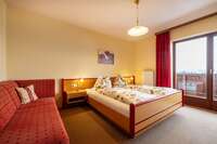 1 Schlafzimmer mit Doppelbett und Schlafcouch