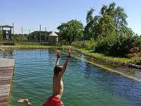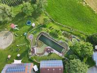 Ein großer Hofraum mit Schwimmteich/Naturpool, Liegewiese, großer Bolzplatz, Spiel u. Grillplatz laden zum Spielen, Verweilen und Relaxen ein.