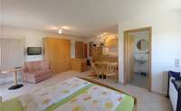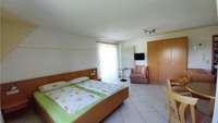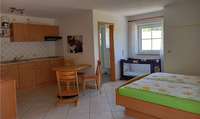 Für die Unterhaltung steht Ihnen ein Flachbildschirm TV zur Verfügung. Ebenso verfügen alle Wohnungen über WLAN. Auf Wunsch statten wir Ihre Wohnung mit Kinderbett, Hochstuhl, Tritthocker und Windeleimer aus.Die zwei 1 Zimmer Appartements "Apfel" im 1. OG und "Birne" im DG im Haupthaus sind ca. 30 m2 groß und ideal für zwei Personen. Gerne werden die Wohnungen auch von kleinen Familien oder den Großeltern gebucht. Eine Ausziehcouch bietet Platz für eine dritte Person.