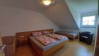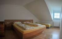 Die zwei 2 Zimmer Wohnungen "Hopfen" im 1. OG und "Kirsche" im DG liegen ebenfalls im Haupthaus und sind ca. 60 m2 groß. Die Wohnungen haben ein separates Schlafzimmer (Fewo "Hopfen" Familienzimmer mit Doppelbett, Couchliege und Kinderbett) und einen geräumigen Wohnbereich. Auf den Ausziehsofas in Bettqualität finden Sie weitere Schlafgelegenheiten.