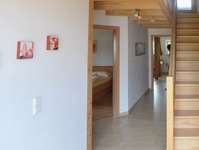 Die zwei 4 Zimmer Maisonettewohnungen "Quitte" und "Mirabelle" liegen im 2008 umgebauten Stadel, sind 80 m2 groß und erstrecken sich jeweils über 2 Etagen. Auf der ersten Ebene im Obergeschoss befindet sich der Wohn- und Essbereich mit Küchenzeile, ein Schlafzimmer mit Doppelbett und das Bad mit Badewanne und Dusche, sowie ein separates WC. Im Dachgeschoss befinden sich zwei weitere Schlafzimmer.