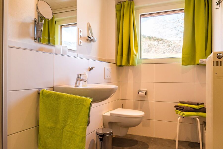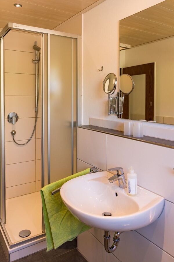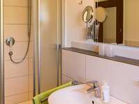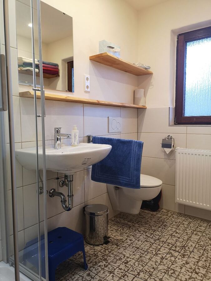 Dusche/WC, Föhn, in der Fewo 3 sind 2 Bäder vorhanden, eines davon barrierefrei