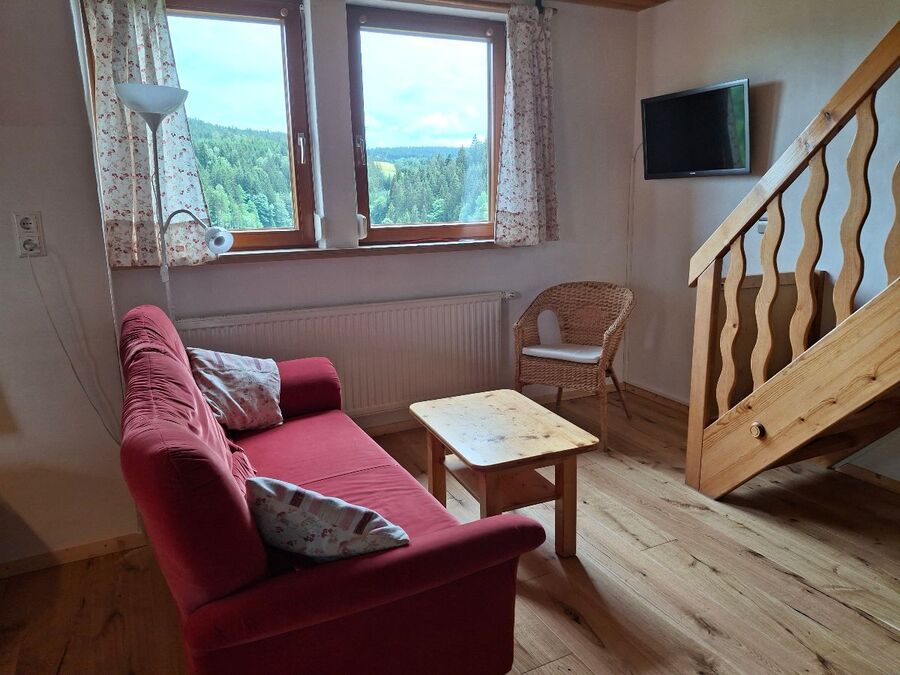 In der Fewo 3 gibt es ein Extra-Wohnzimmer mit Sofa, Sessel, Sat-TV, Zugang zum Balkon