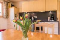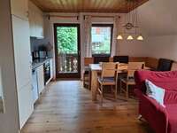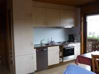 Jeweils gemütliche und komfortabel ausgestattete Wohnküche mit Herd, Backofen, Spülmaschine, Kaffeemaschine, Handmixer, Toaster, Wasserkocher usw. Eßgruppe und in den kleineren Fewos Sofa u. Sat-TV und Zugang zum BAlkon