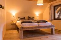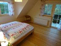 Im Hofgebäude gibt es nun eine sehr großzügige, helle und sonnige, komplett neue, komfortable und barrierefreie Ferienwohnung. Diese wurde mit ökologischen Materialien wie Holz, Lehm und Kalk errichtet, hat ein super Raumklima, eine sehr großzügige Aufteilung und Ausstattung unter Verwendung sehr hochwertiger Vollholzmöbel und Echt-Leder-Sofa.Für jede Wohnung gilt: