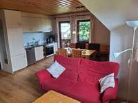 Gegen Gebühr kann eine Sauna sowie ein Ruheraum genutzt werden oder ein Aufenthaltsraum für bis zu 25 Personen mit Küchenzeile.Ferienwohnung 1 für 2-5 max. 6 Personen