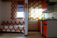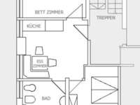 2 1/2-Ziimmer-Wohnung für 4-5 Personen, ca. 42 qm; wie Typ A, jedoch zusätzlich ein Schlafraum mit Doppelstockbetten. Zusatzbett möglich.