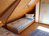 Zusätzlich kann ein Dachzimmer genutzt werden, welches Platz für zwei bis drei weitere Personen bietet. Es ist nicht in die Wohnung integriert, sondern ganz einfach über das Treppenhaus erreichbar. Besonders beliebt ist diese Wohnung deshalb in der Regel bei Familien mit Teenagern.