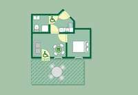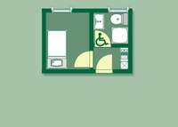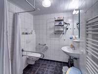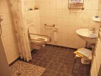 Im Erdgeschoß sind alle Duschen bodengleich, begehbar und behindertenfreundlich. Hier sind alle Vorrichtungen (auch die WCs) rollstuhlfreundlich.