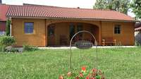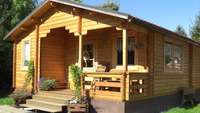 Die Blockhäuser befinden sich in den zwei weitläufigen Gärten mit Sitzgelegenheiten. Die Ferienwohnungen Speicher und Schwalbennest und die Doppelzimmer liegen im Bauernhaus, das an den geräumigen Innenhof mit Spielfahrzeugen und Schaukeln und an den Stall grenzt.